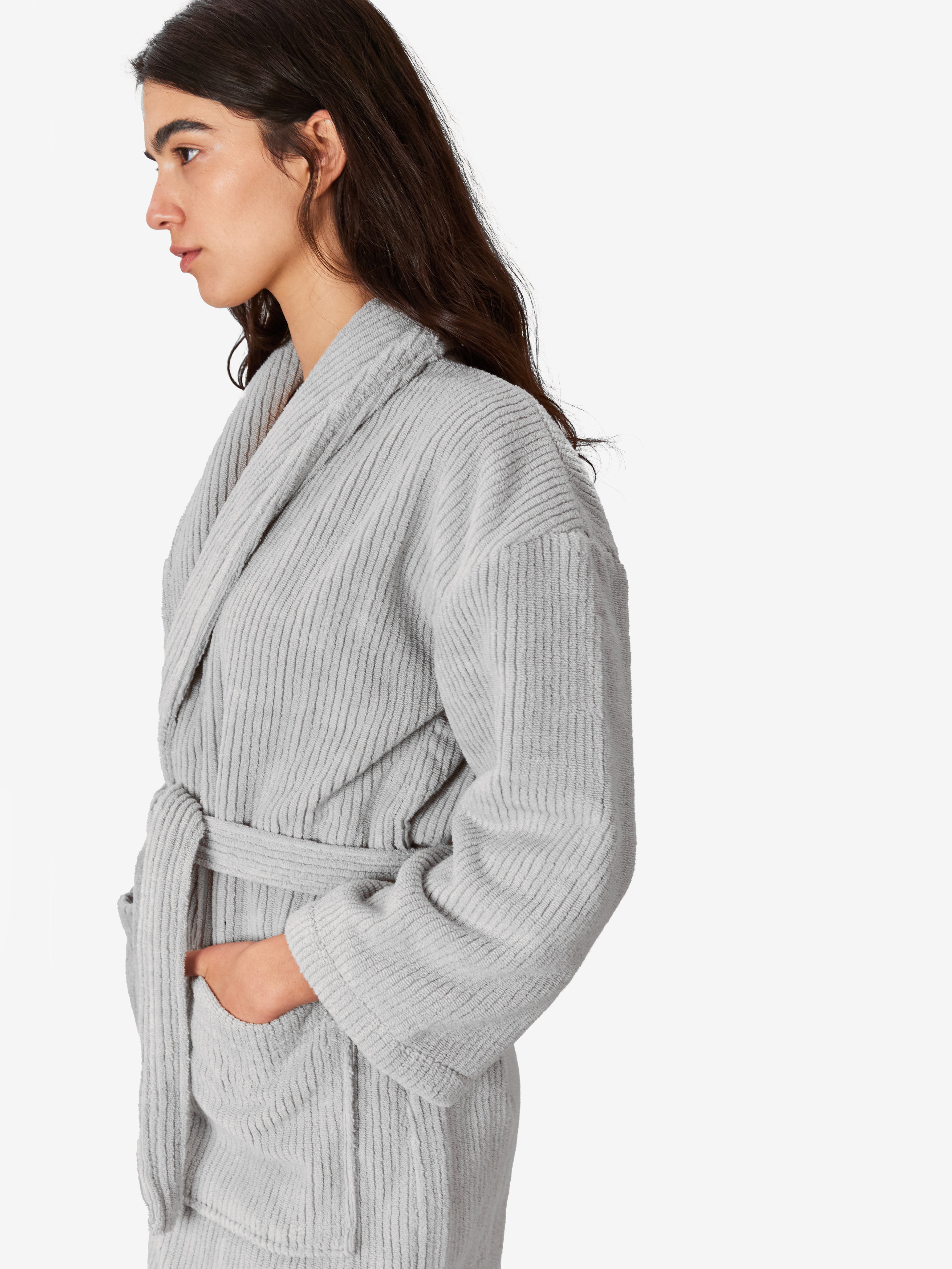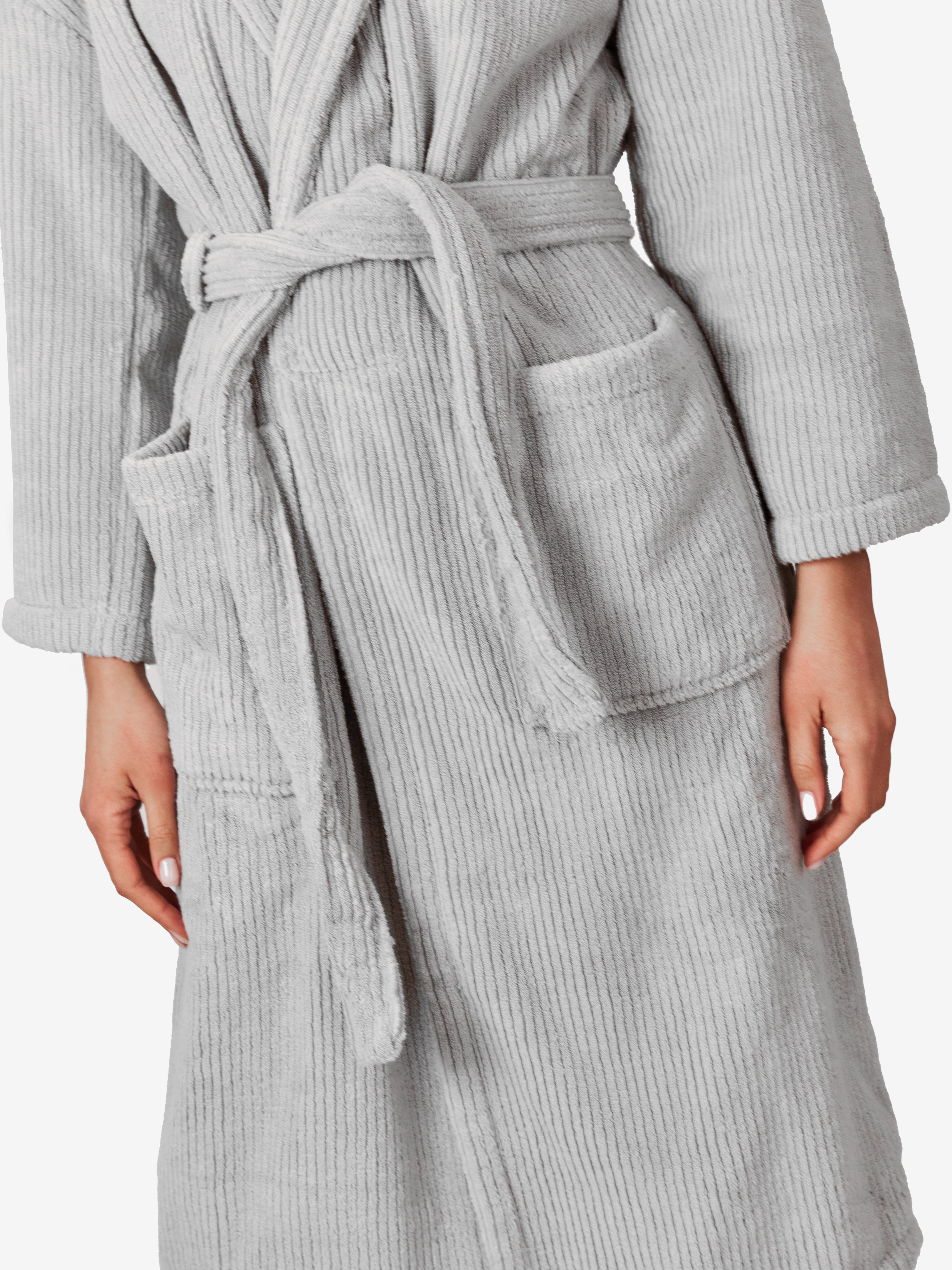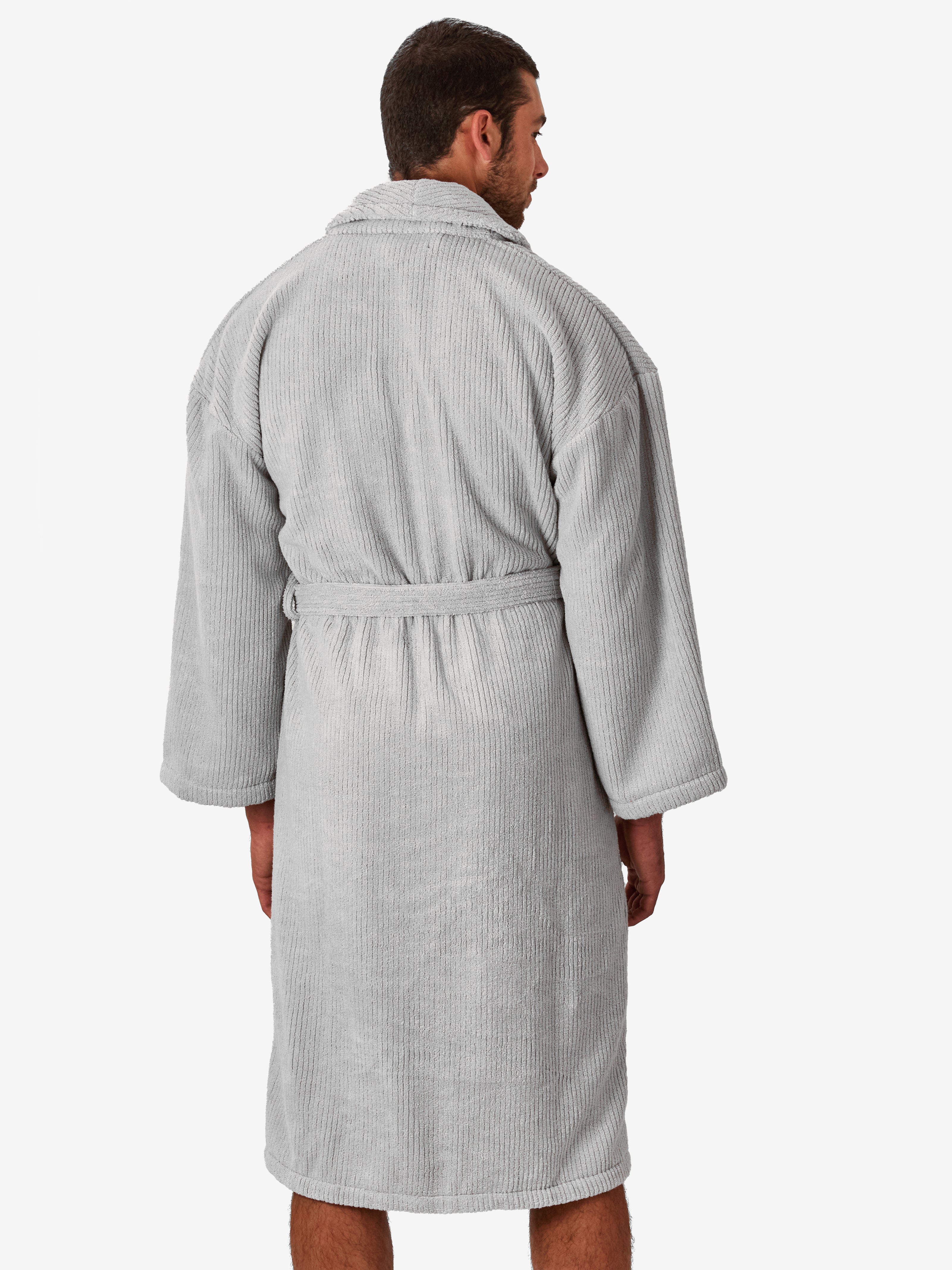 החלוק, עשוי 100% כותנה טורקית ובעל גימור של פסים אנכיים המעניקים לו תחושת רכות מלטפת. מגיע עם כיסים וחגורת מותן, הפריט האולטימטיבי לחווית רחצה שלמה ומהנה.