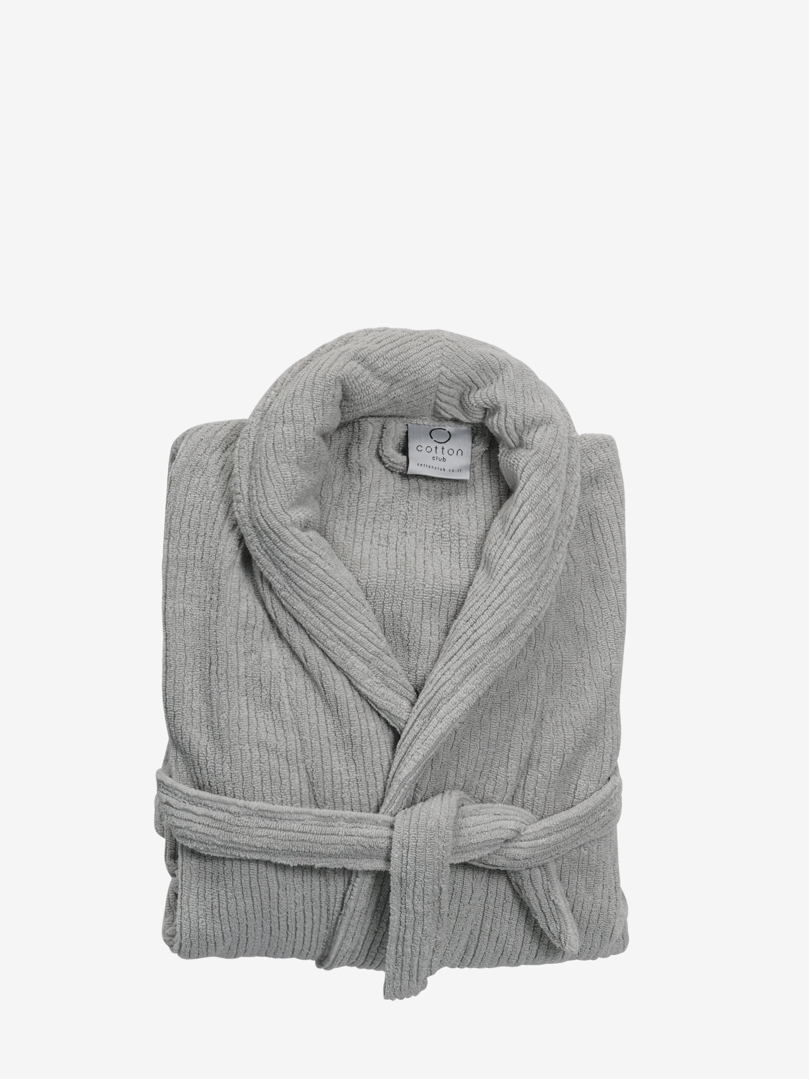 החלוק, עשוי 100% כותנה טורקית ובעל גימור של פסים אנכיים המעניקים לו תחושת רכות מלטפת. מגיע עם כיסים וחגורת מותן, הפריט האולטימטיבי לחווית רחצה שלמה ומהנה.
